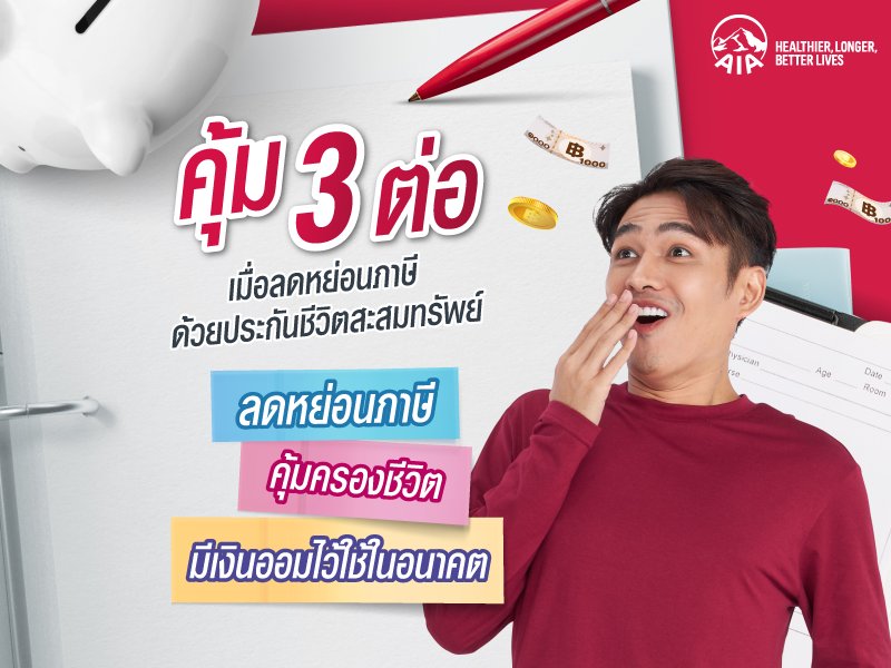- ลดหย่อนได้สูงสุดถึง 300,000 บาท ถ้ายังไม่ใช้สิทธิลดหย่อน เบี้ยประกันชีวิตทั่วไป