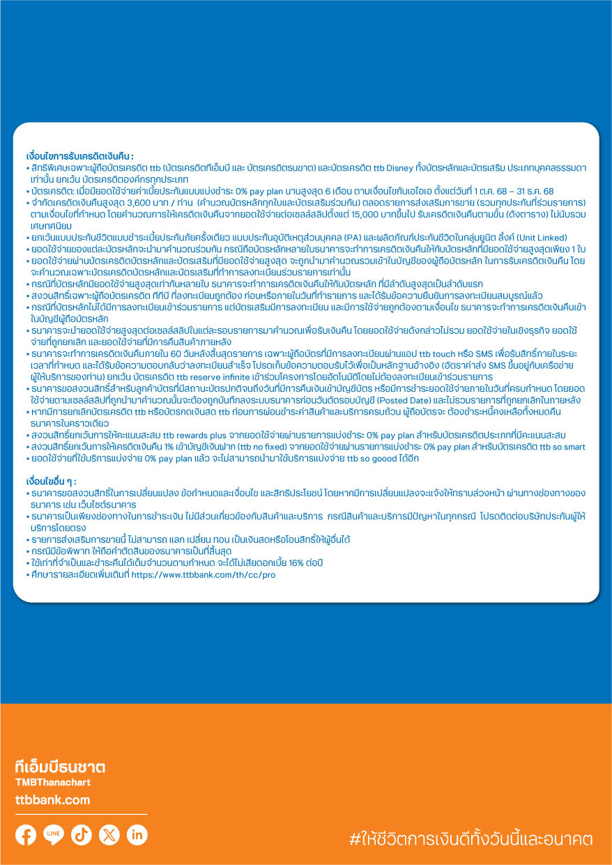 ระยะเวลาโปรโมชัน : 1 ตุลาคม – 31 ธันวาคม 2568